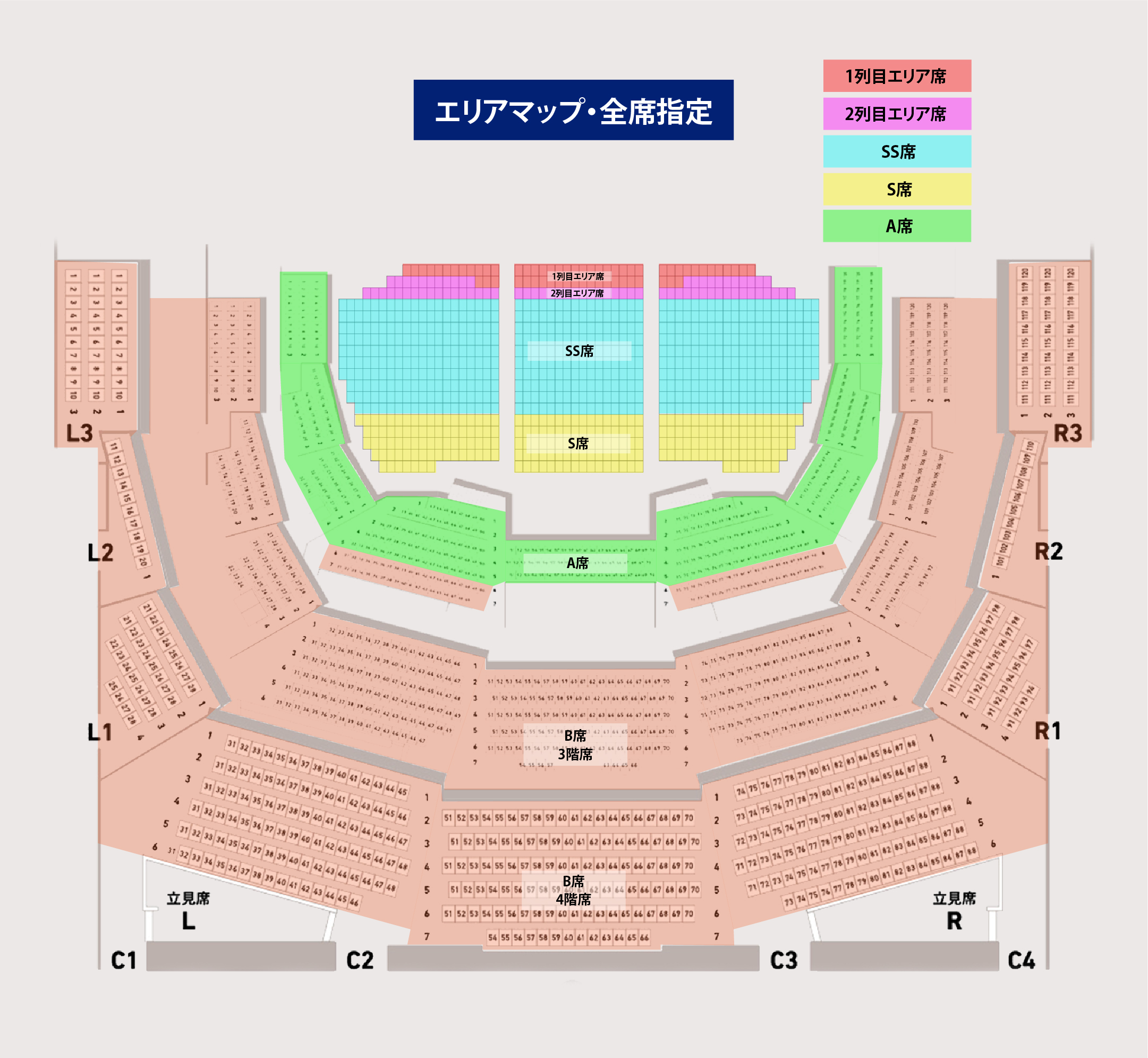 ※2列目エリアチケットは、2列目の左右の席と、3列目が座席となります。